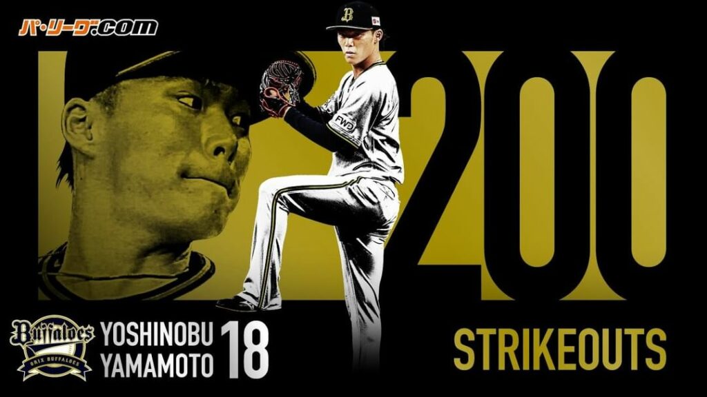 オリックス・山本投手が9回4安打無失点で球団では2010年金子千尋投手以来のシーズン4完封、1シーズン15連勝は球団新記録、シーズン200奪三振到達は球団では2013年金子千尋投手以来、シーズン18勝は球団では1987年山沖之彦投手以来。