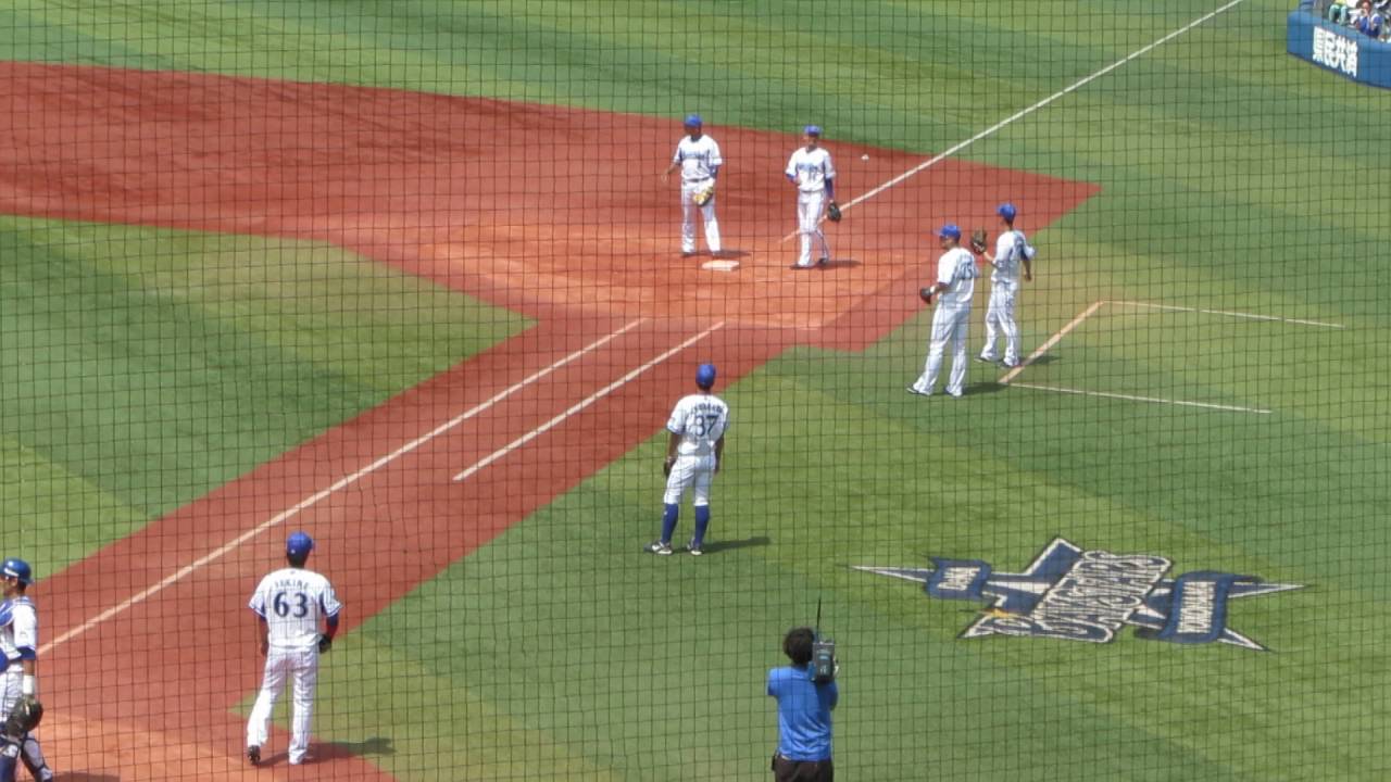 横浜DeNAベイスターズ 乙坂智選手・筒香嘉智選手・桑原将志選手・関根大気選手の練習中のボール回し(2016.5.14)