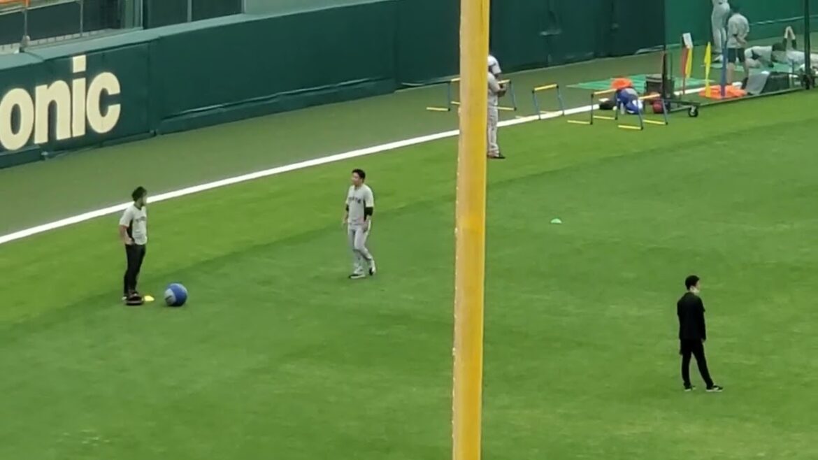 20220520 ケガの具合を確認?鍬原拓也投手 試合前 読売ジャイアンツ(巨人)@阪神甲子園球場・3塁アルプス席