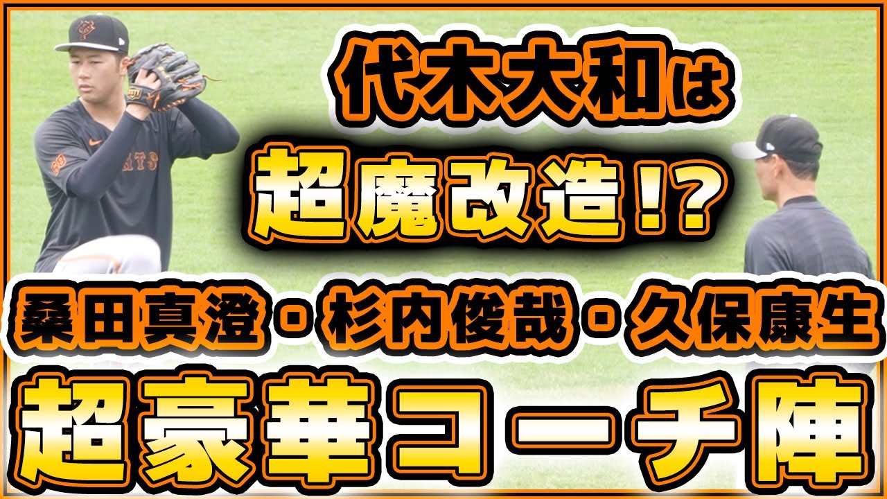代木大和選手が桑田真澄&杉内俊哉&久保コーチから指導を受けていました。