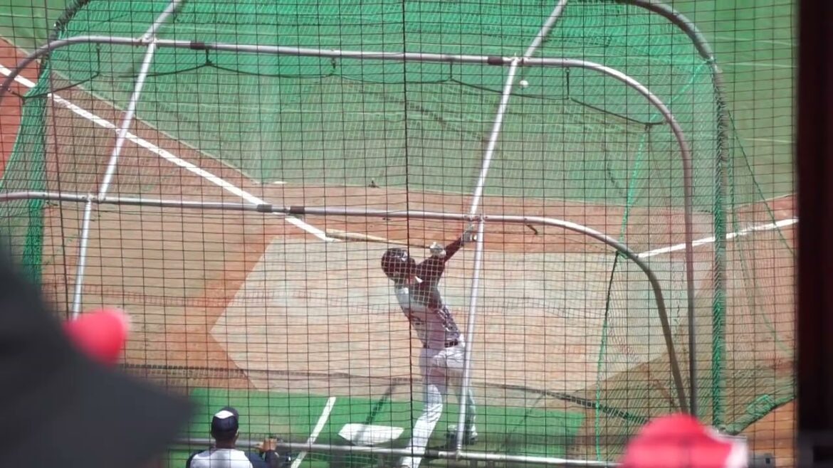 試合前 フリーバッティングをする太田賢吾選手(東京ヤクルトスワローズ)。