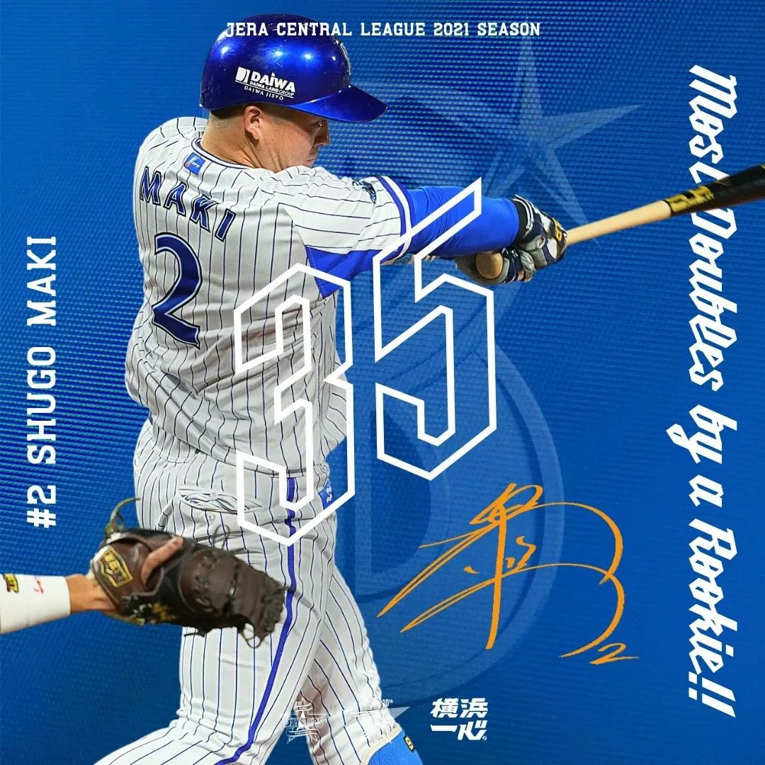 YOKOHAMA-DeNA-BAYSTARS: . #牧秀悟 選手、5打席連続二塁打で リーグ新人最多二塁打記録を更新!! . #牧しか勝たん #baystars…