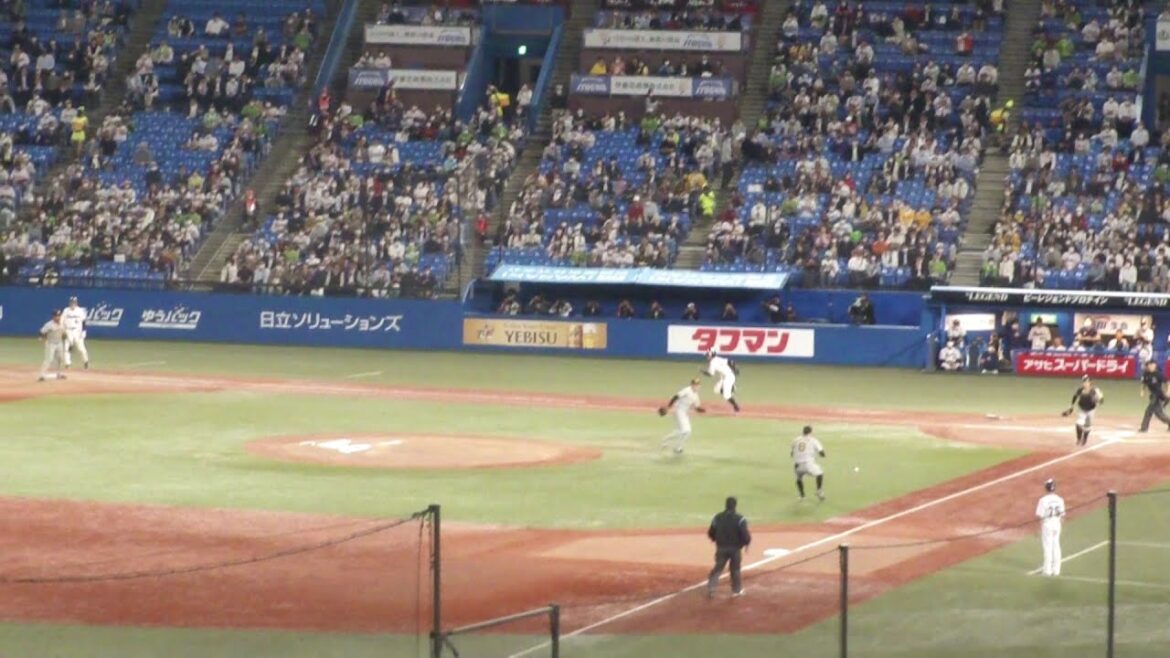 2022年5月19日(木) ヤクルト vs 阪神 神宮球場 現地で撮影 7回裏、山崎晃大朗のセーフティーバントにサード佐藤輝明が悪送球で、ランナー塩見泰隆がホームイン。 Tokyo Yakult Swallowsエラースワローズセーフティーバントタイガースバントヤクルトヤクルトスワローズ佐藤 輝明佐藤輝明塩見塩見 泰隆塩見泰隆山崎 晃大朗山崎晃大朗山田 哲人山田哲人岩貞岩貞 祐太岩貞祐太悪送球東京東京ヤクルトスワローズ神宮追加点阪神阪神タイガース NPBHUB.COM | The Fanbase of Nippon Baseball & Nippon Professional Baseball