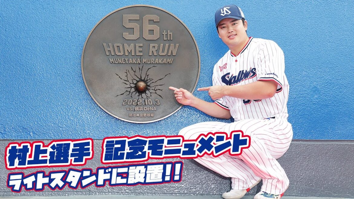 2022年シーズン、日本野球機構(NPB)における日本人打者シーズン最多本塁打記録 56 号(NPB 史上歴代 2 位)を達成した村上宗隆選手の記念モニュメントが、2023年6月15日(木)神宮球場に設置され、除幕式が行われました。