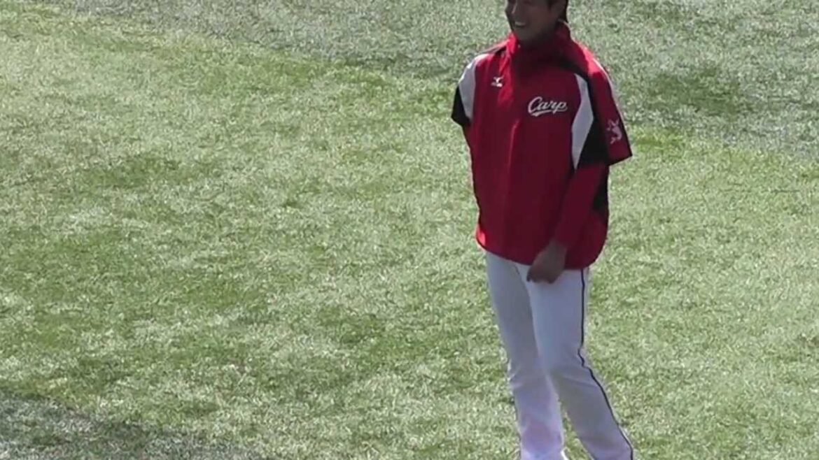 そして終わりの方でフェンス際を走っているのはこの日素晴らしい投球で初勝利のルーキー野村祐輔投手。