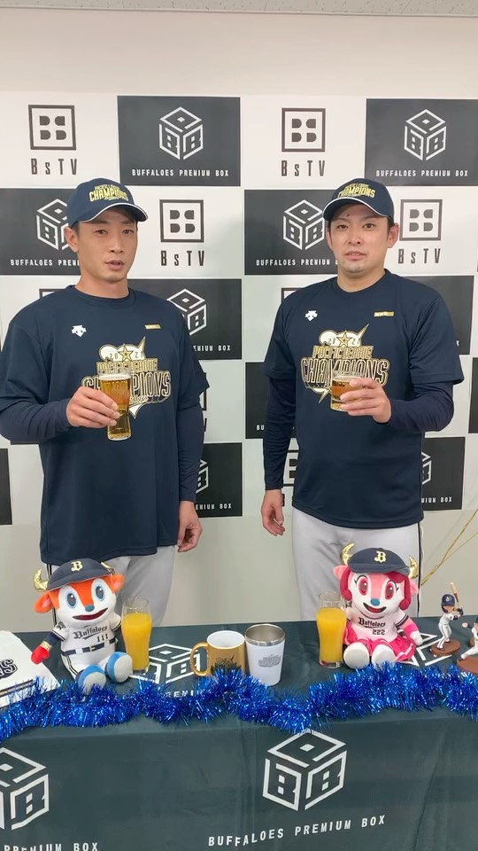 ファンの皆さま!優勝おめでとうございます!松井雅人選手、海田智行投手とリモートで乾杯~🍻🥂!!#全員で乾杯#全員で優勝#25年分のありがとう#全員で勝つ#松井雅人#海田智行#Bs2021#buffaloes#baseball#ORIX#プロ野球 25年分のありがとうbaseballBs2021buffaloesNPB Pacific LeagueOfficial MediaORIXORIX BuffaloesORIX Buffaloes Official Mediaオリックス・バファローズプロ野球全員で乾杯全員で優勝全員で勝つ松井雅人海田智行 NPBHUB.COM | The Fanbase of Nippon Baseball & Nippon Professional Baseball