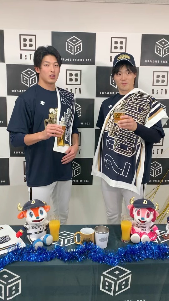 ファンの皆さま!優勝おめでとうございます!山崎颯一郎投手、山崎福也投手とリモートで乾杯~🍻🥂!!#全員で乾杯#全員で優勝#25年分のありがとう#全員で勝つ#山崎颯一郎#山崎福也#Bs2021#buffaloes#baseball#ORIX#プロ野球 25年分のありがとうbaseballBs2021buffaloesNPB Pacific LeagueOfficial MediaORIXORIX BuffaloesORIX Buffaloes Official Mediaオリックス・バファローズプロ野球全員で乾杯全員で優勝全員で勝つ山崎福也山崎颯一郎 NPBHUB.COM | The Fanbase of Nippon Baseball & Nippon Professional Baseball