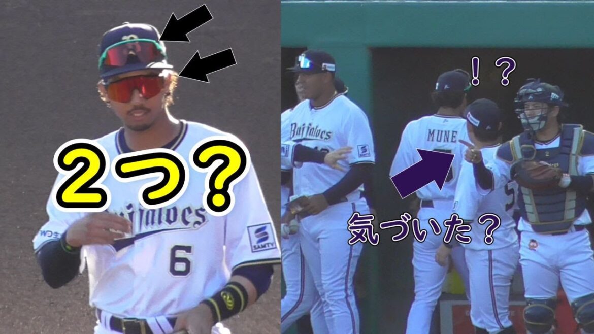 1回表の守りの時のみ、サングラスを二つしていた宗佑磨選手