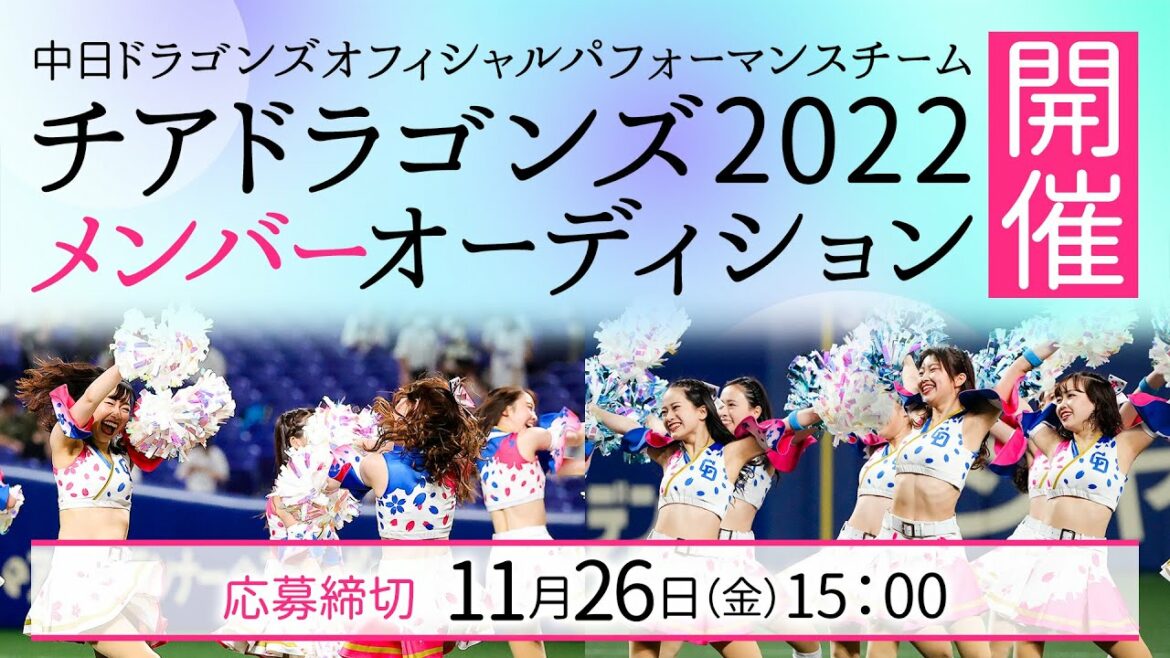 中日ドラゴンズは球団オフィシャルパフォーマンスチーム「チアドラゴンズ2022」新メンバーのオーディションを開催いたします。