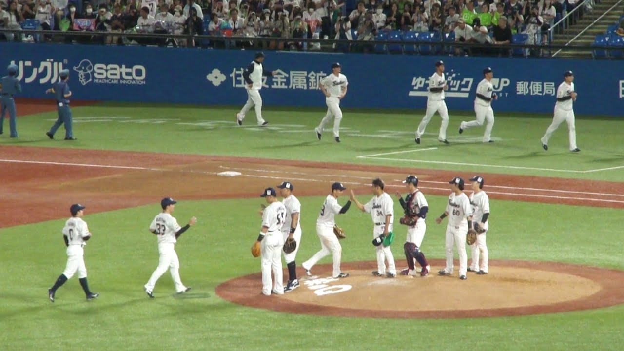 5回裏ノーアウト1・2塁で、山崎晃大朗が内野安打し、ショート山﨑剛が悪送球。S 11 – 0 E