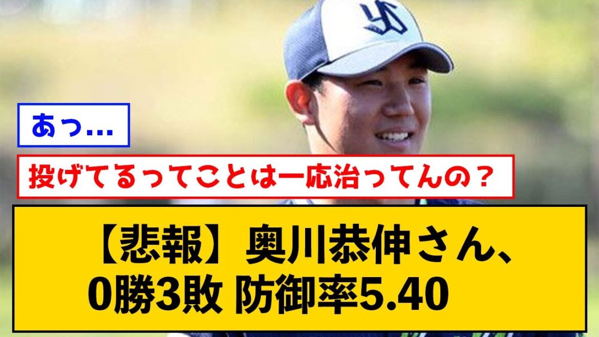 【悲報】奥川恭伸さん、 0勝3敗 防御率5.40【なんJコメント付き】