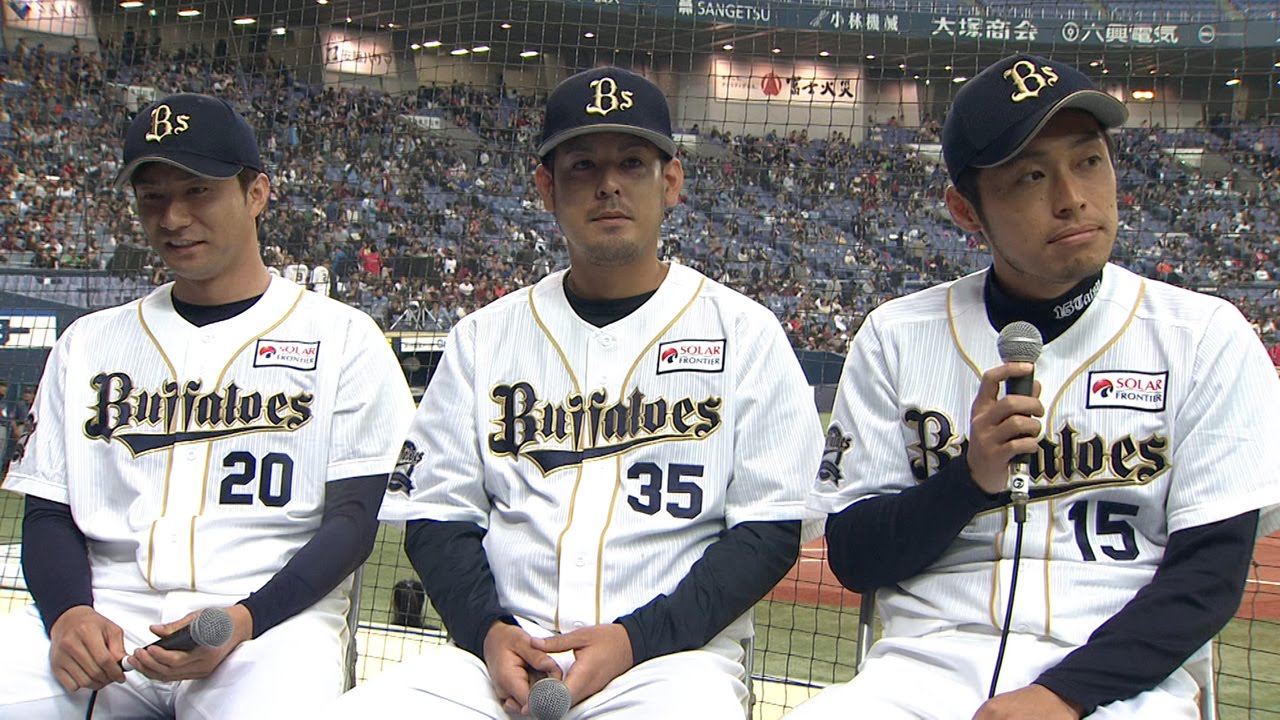 選手トークショー!のコーナーに中継ぎ投手の3人、馬原、比嘉、佐藤達が登場した。ブルペンでの過ごし方から先発への思いなどを語ってくれた。 (11月24日 オリックスファン感謝デー)