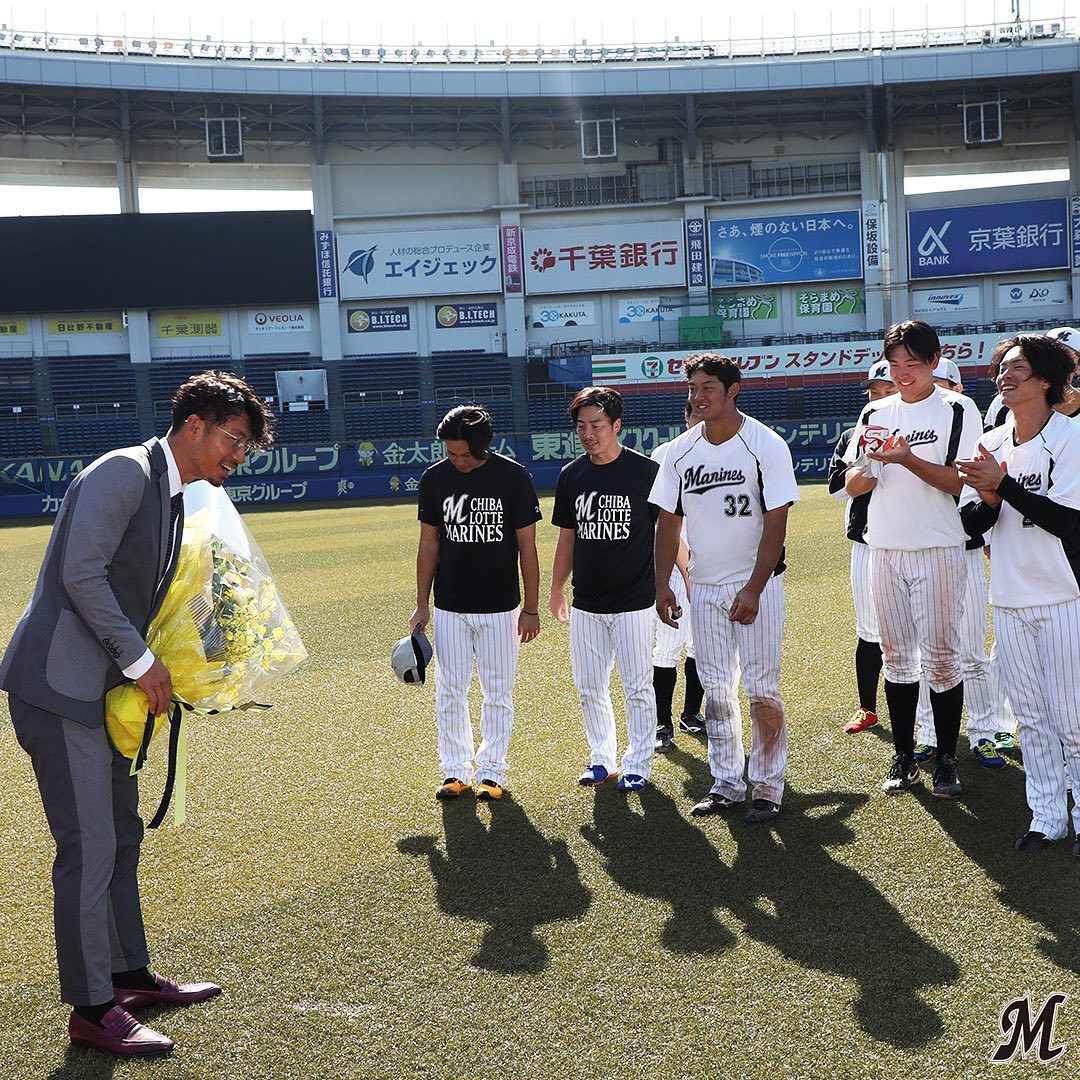会見前にグラウンドに挨拶に来た #鳥谷敬 選手。集合写真を撮影しました。#chibalotte Chiba Lotte MarinesChiba Lotte Marines Official MediachibalotteNPB Pacific LeagueOfficial Media千葉ロッテマリーンズ鳥谷敬 NPBHUB.COM | The Fanbase of Nippon Baseball & Nippon Professional Baseball
