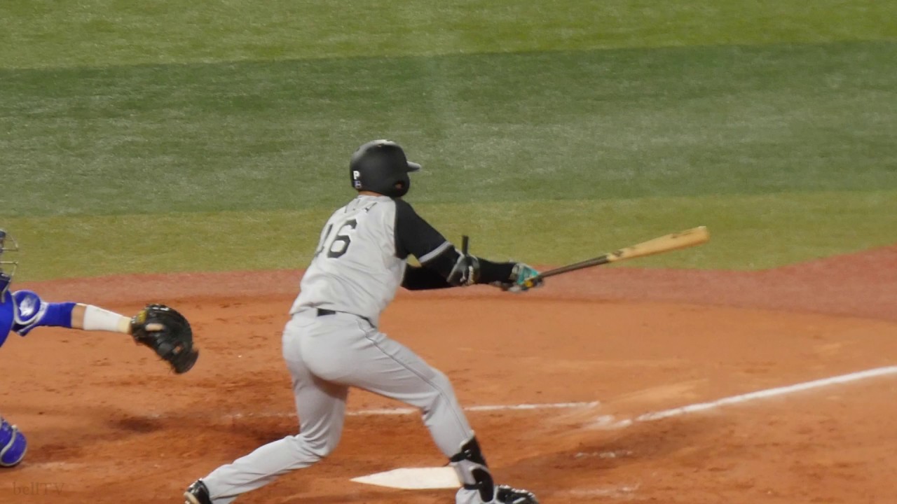 阪神タイガース 秋山拓巳 バッティングフォーム&バッティング(スローモーション)【ライト前ヒット】