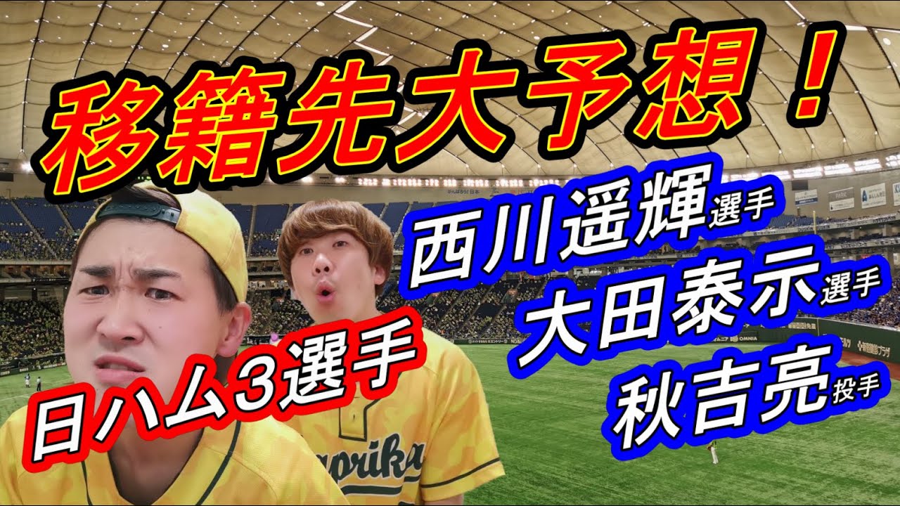 北海道日本ハムファイターズ西川遥輝選手、大田泰示選手、秋吉亮投手の3選手が自由契約(ノーテンダー)になりました!!そこで僕達パプリカが移籍先を大予想していきます!!