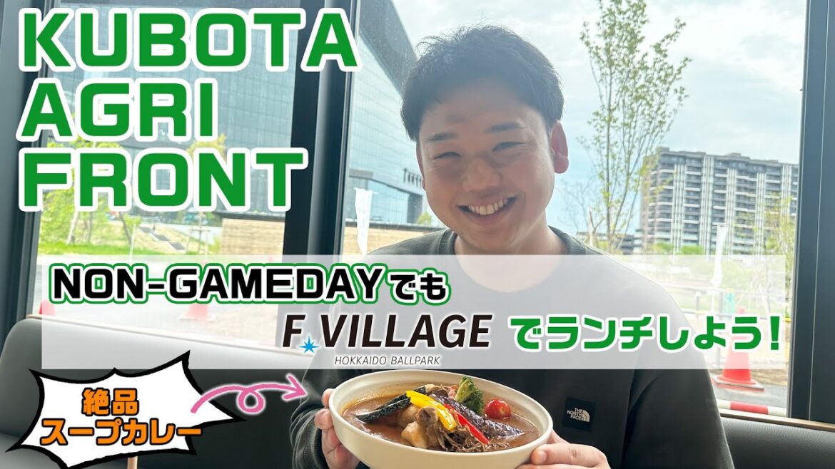 Fビレッジ KUBOTA AGRI FRONTのなかにあるカフェを訪れたファイターズOB谷口雄也。 新鮮野菜とこだわりの食材で作られたスープカレーやサラダ、さらに季節の恵みを味わうスイーツを堪能!