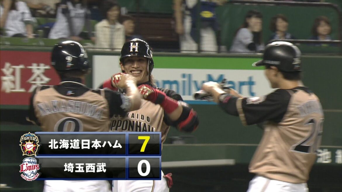 4点リードの日本ハムはなおも2回、二死一、三塁で陽岱鋼がライトスタンドへ運ぶ第25号3ランホームラン。リードを7点に広げ、先発・牧田を早々に降板させた。苦しい展開となった埼玉西武、キャプテン栗山がチームを鼓舞するシーンがカメラに収められていた。(10月2日 埼玉西武-日本ハム)