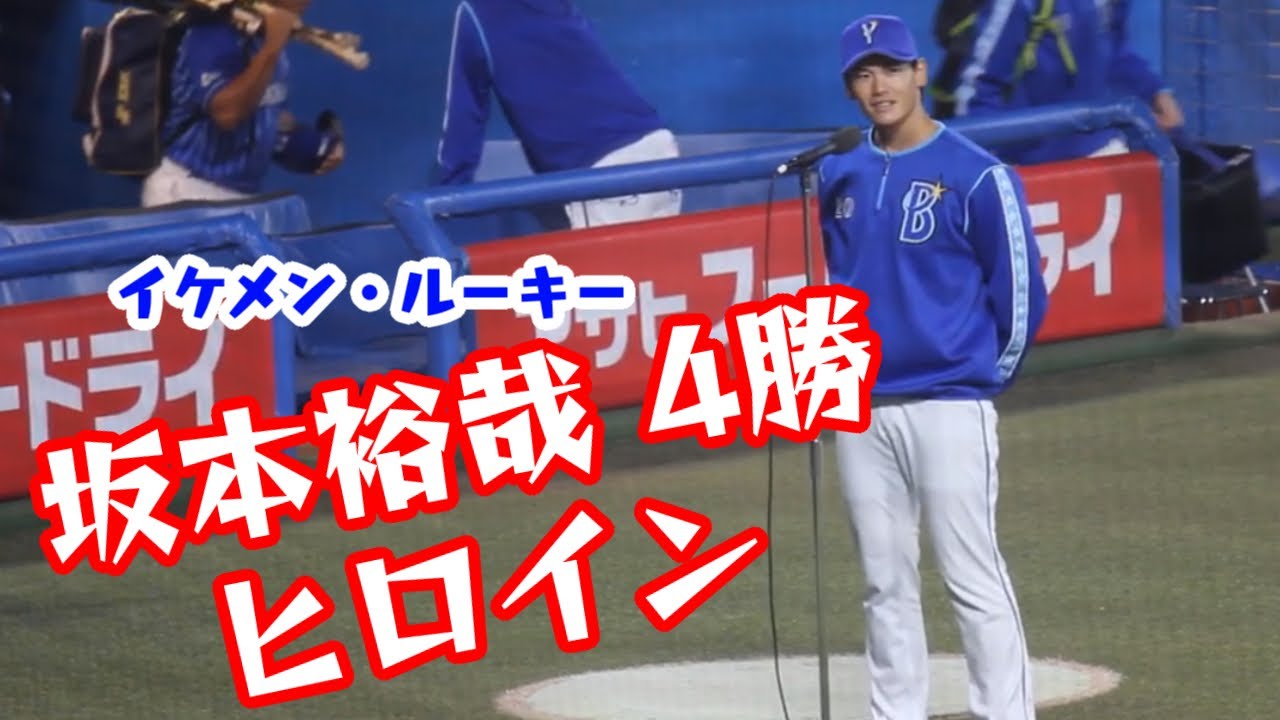 イケメン 坂本裕哉 4勝 ヒロイン 記念撮影 横浜DeNAベイスターズ 10月14 日 東京ヤクルトスワローズ プロ野球 神宮球場 ヒーローインタビュー