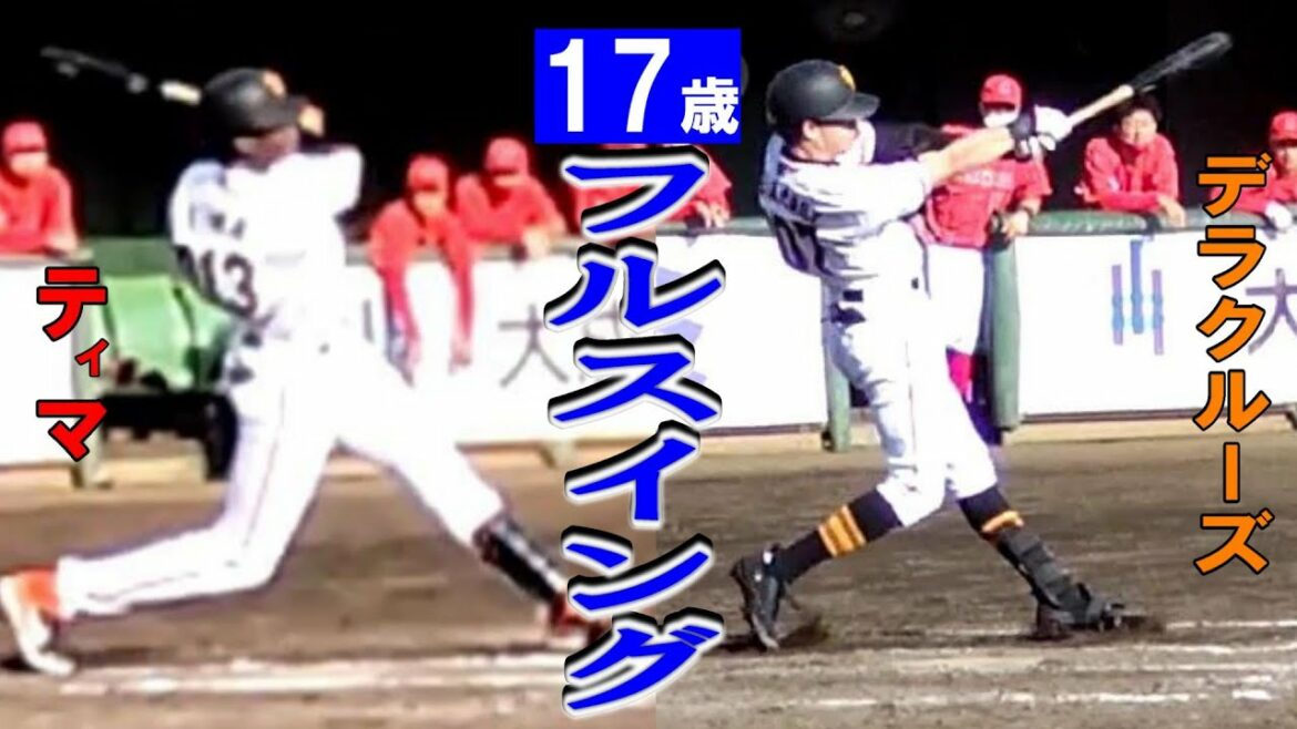 ドミニカ共和国からやってきた17歳のティマ選手、デラクルーズ選手が来日初の対外試合に出場。全足利クラブとのプロ・アマ交流戦でフルスイングを見せました!