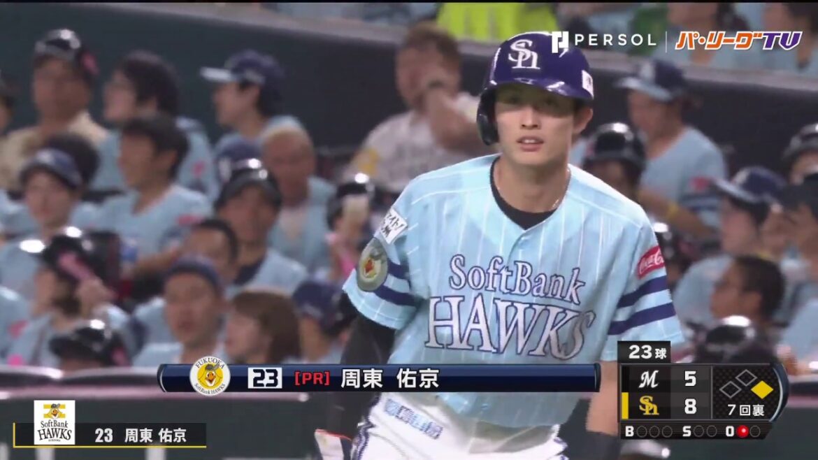2019年7月23日 福岡ソフトバンクと千葉ロッテによるリーグ公式戦 簡単に決めてるように見える、福岡ソフトバンク・周東佑京の盗塁。どれだけ牽制しても、盗塁してしまうこの脚力。あなただったらどう封じますか!? Fukuoka SoftBank Hawks周東佑京福岡ソフトバンクホークス NPBHUB.COM | The Fanbase of Nippon Baseball & Nippon Professional Baseball