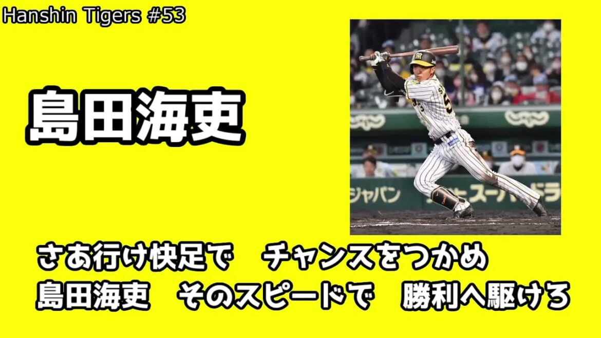 動画ではお久しぶりですゆのみです。島田選手は応援してた選手の中の一人なので応援歌ができて本当に嬉しいです。 Hanshin Tigers島田海吏阪神タイガース NPBHUB.COM | The Fanbase of Nippon Baseball & Nippon Professional Baseball