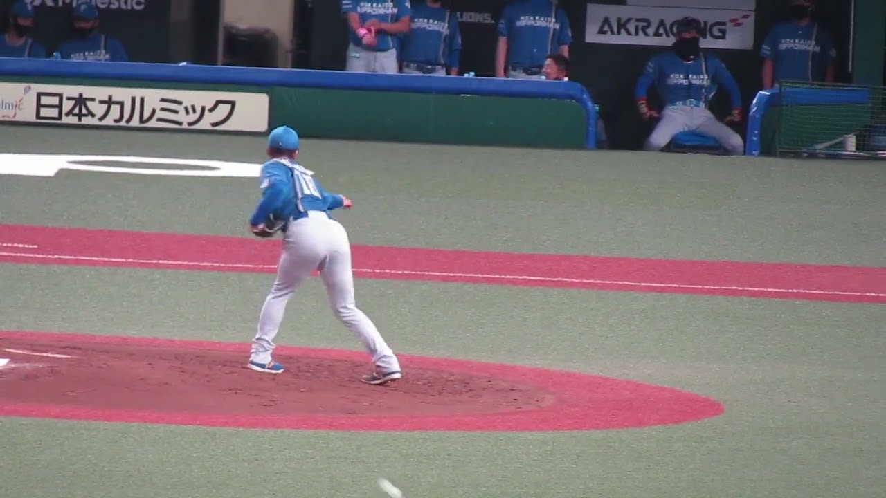 吉田輝星の投球練習とベンチで見守るBIGBOSS新庄2022年6月29日