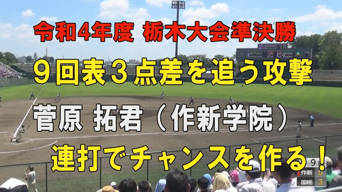 第104回高校野球栃木大会準決勝 作新学院9回表3点を追う攻撃!2番菅原拓君連打でチャンスを作る!