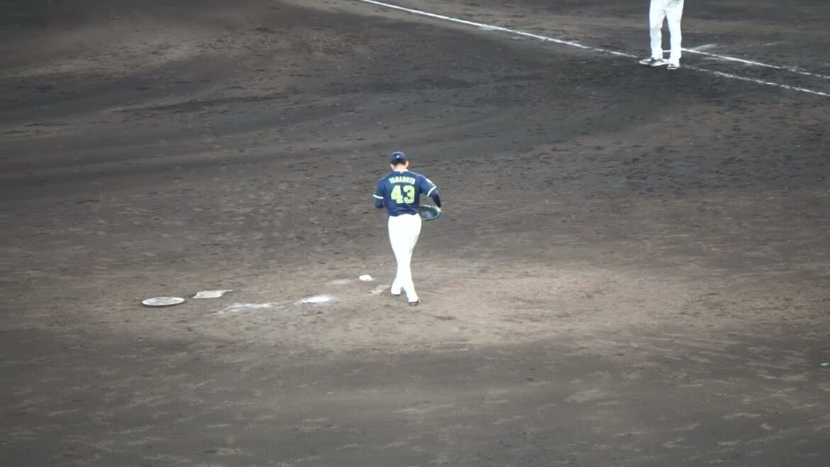 12回裏 山本大貴投手がマウンドへ投球練習を始める。
