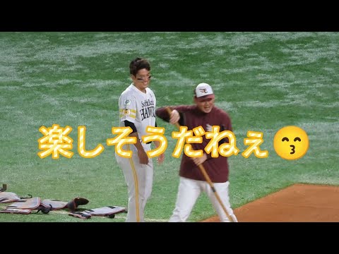 栗原陵矢選手😙東北楽天ゴールデンイーグルスの佐竹学コーチとの会話が楽しそうだねぇ🥳