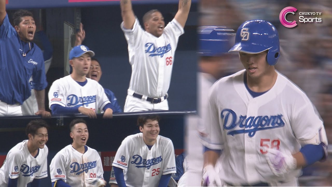 石橋康太選手がプロ入り後初ホームランを記録した。