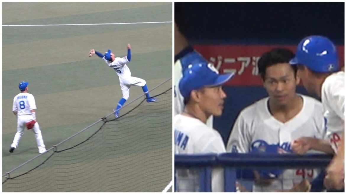 レフト線のフライの処理を巡って龍空&大島と話しをする大西・荒木コーチ(2023年7月4日)