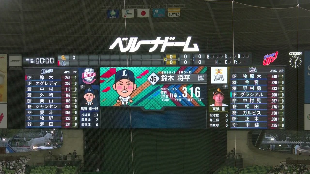 埼玉西武ライオンズ・46鈴木将平選手の登場曲です。 曲は『雨のち虹色』です。 なお、2022/4/8~10はプレイヤーズフェスタ期間中で、選手イラストを使用した場内演出となっています。 :2022年4月9日(土) ベルーナドーム 埼玉西武VSソフトバンク: Saitama Seibu Lionsベルーナドーム埼玉西武ライオンズ完全試合応援歌登場曲福岡ソフトバンクホークス鈴木将平 NPBHUB.COM | The Fanbase of Nippon Baseball & Nippon Professional Baseball
