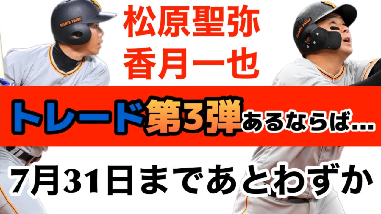 2023年読売ジャイアンツの石川慎吾・廣岡大志が今シーズントレードにより千葉ロッテ、オリックスに移籍したが補強期限の7月31日まであと僅か。注目の松原聖弥はリリーフ陣補強のために他球団移籍となるか。