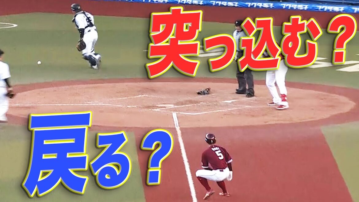 2020年8月2日の千葉ロッテ対東北楽天の一戦。4回表に3塁走者の茂木栄五郎が突っ込むのか、戻るのかどっちなのか分からない揺さぶり。結果ツッコミ、いえ、突っ込み、無事に生還しました。