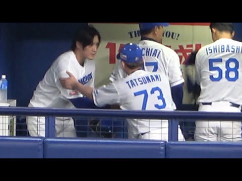 移籍後初登板で1回無失点の齋藤綱記を労う立浪監督(2023年7月4日)