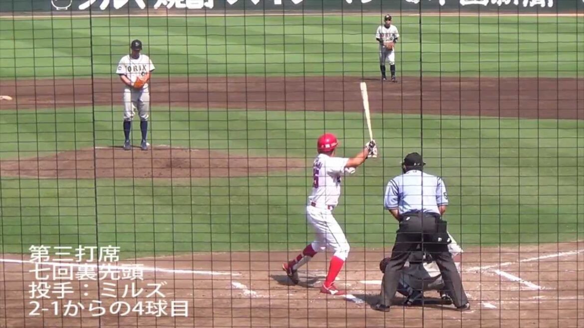 2013年8月13日(火) ウエスタンリーグ公式戦@マツダスタジアム カープvsバファローズ20回戦 この日6番ライトでスタメン出場のドラ1ルーキー・高橋大樹選手(龍谷大平安)は 第三打席でミルズ(Bradley Aaron Mills)投手から バックスクリーンへプロ初ホームランを放ちます! 7回裏 2番PH横山→1ミルズ 高橋k137b137b124中越え本塁打138(プロ初ホームラン!) Bs1-1C あたりもバット投げも豪快です! CX390で撮影 CX390Hiroshima Toyo Carpカープ二軍ドラ1バット投げプロ初ホームラン広島東洋カープ高橋大樹髙橋大樹龍谷大平安 NPBHUB.COM | The Fanbase of Nippon Baseball & Nippon Professional Baseball