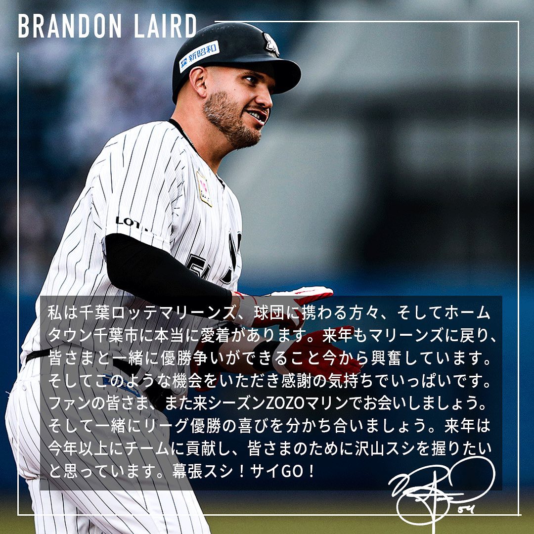 #ブランドン・レアード 選手との来季契約が本日11/22(月)までに合意に達しましたのでお知らせします。#chibalotte Chiba Lotte MarinesChiba Lotte Marines Official MediachibalotteNPB Pacific LeagueOfficial Mediaブランドン・レアード千葉ロッテマリーンズ NPBHUB.COM | The Fanbase of Nippon Baseball & Nippon Professional Baseball