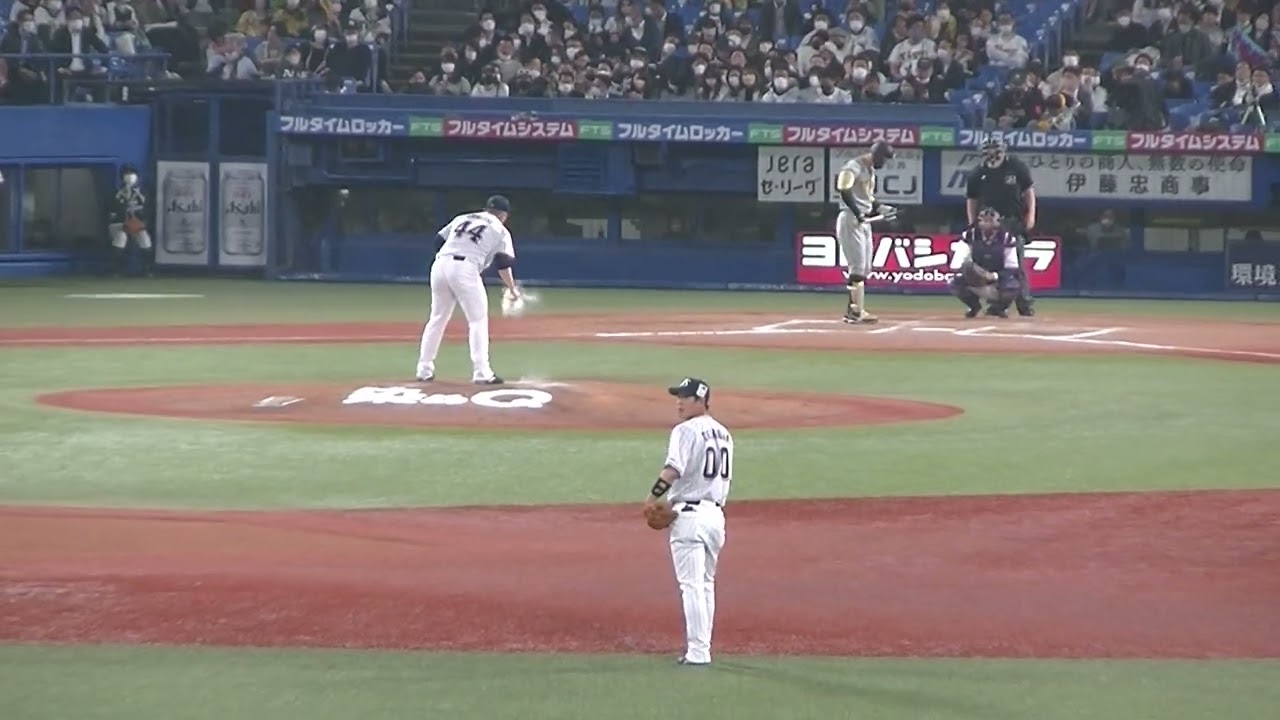 佐藤輝明センターフライに打ち取る大西 広樹 【東京ヤクルトスワローズ対 阪神タイガース2022年5月17日】