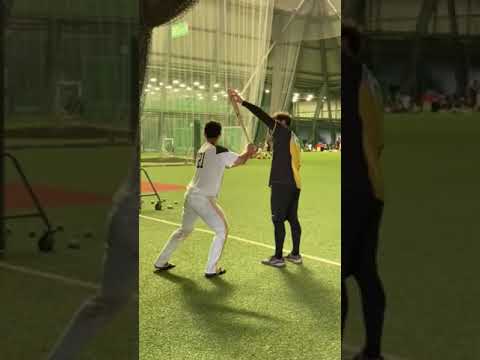 大分B―リングスに所属する内川聖一内野手がソフトバンクの育成4年目、石塚綜一郎捕手に打撃指南。交流試合前に身ぶり手ぶりを交えながら丁寧に指導していました。