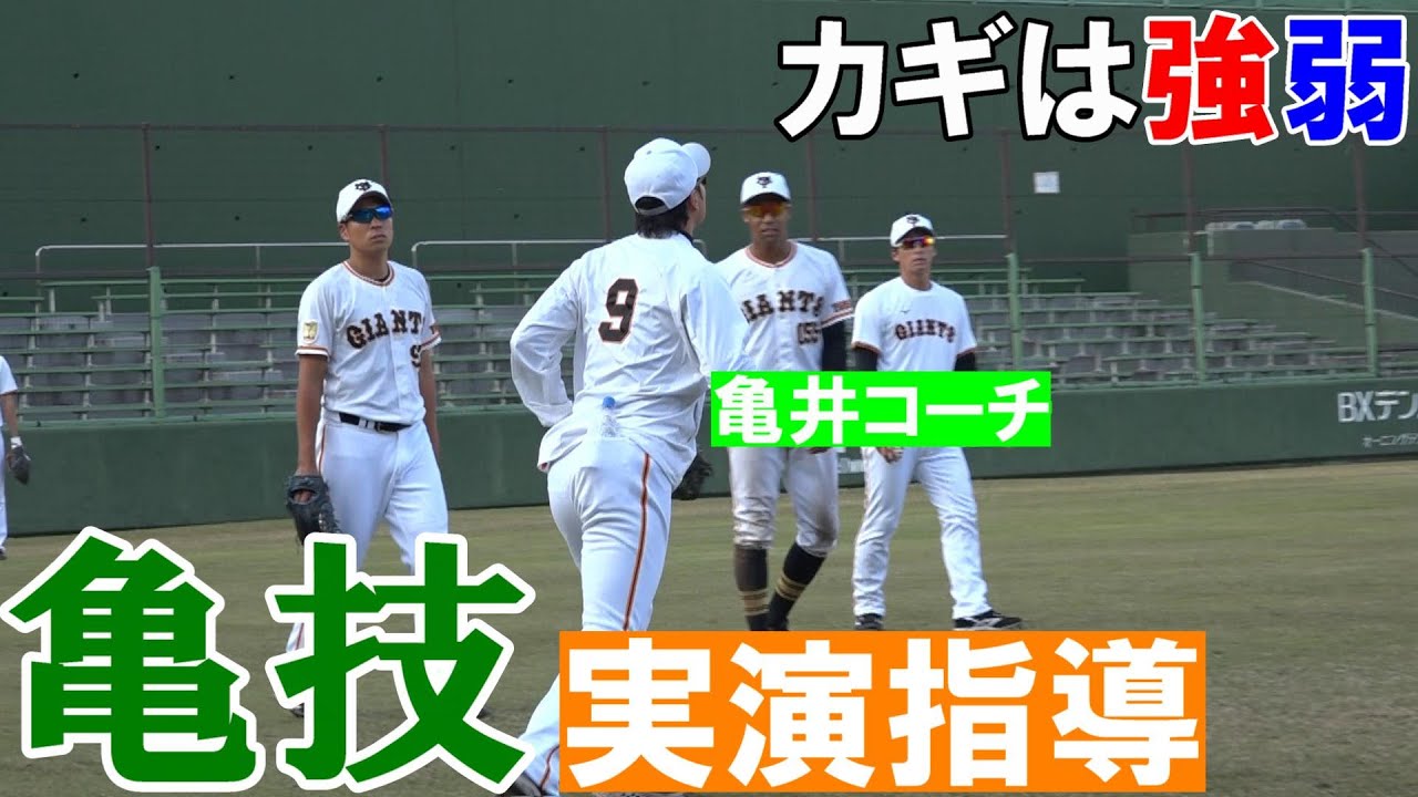 亀井善行一軍外野守備兼走塁コーチが、秋季練習中の若手選手に実演指導!一流の動きを披露し、亀技を伝授していました。