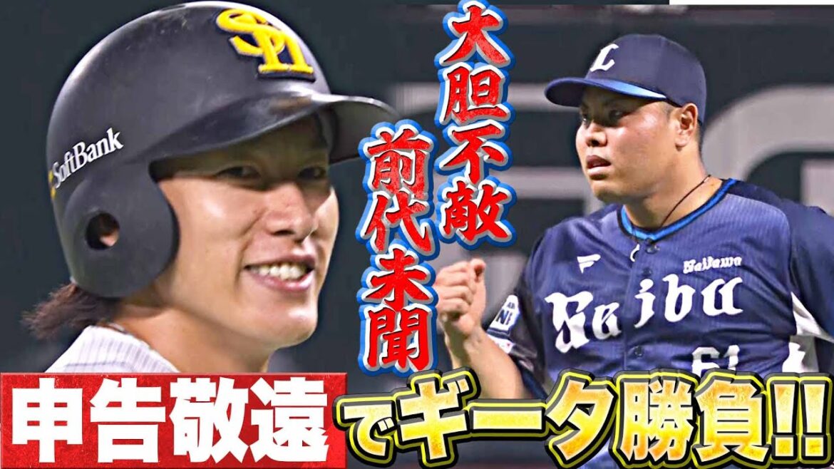 打者・近藤健介、2ボール。ランナーは1,2塁。埋まっているが、平良海馬はベンチに向かって申告敬遠を要求。前代未聞、異例の柳田悠岐勝負。おそらくこれまでは前の打者が敬遠ということはなかったであろうが…歩かせた末の勝負の結果は…!?