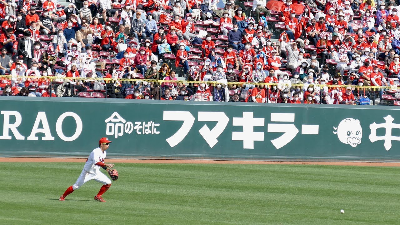2021 5/5 広島東洋カープ VS. 読売ジャイアンツ 9回戦 マツダスタジアム 7回表 ジャイアンツ炭谷選手のセンターフライを逆光のため見失う Hiroshima Toyo Carpカープセンターフライ広島東洋カープ羽月隆太郎見失う逆光 NPBHUB.COM | The Fanbase of Nippon Baseball & Nippon Professional Baseball