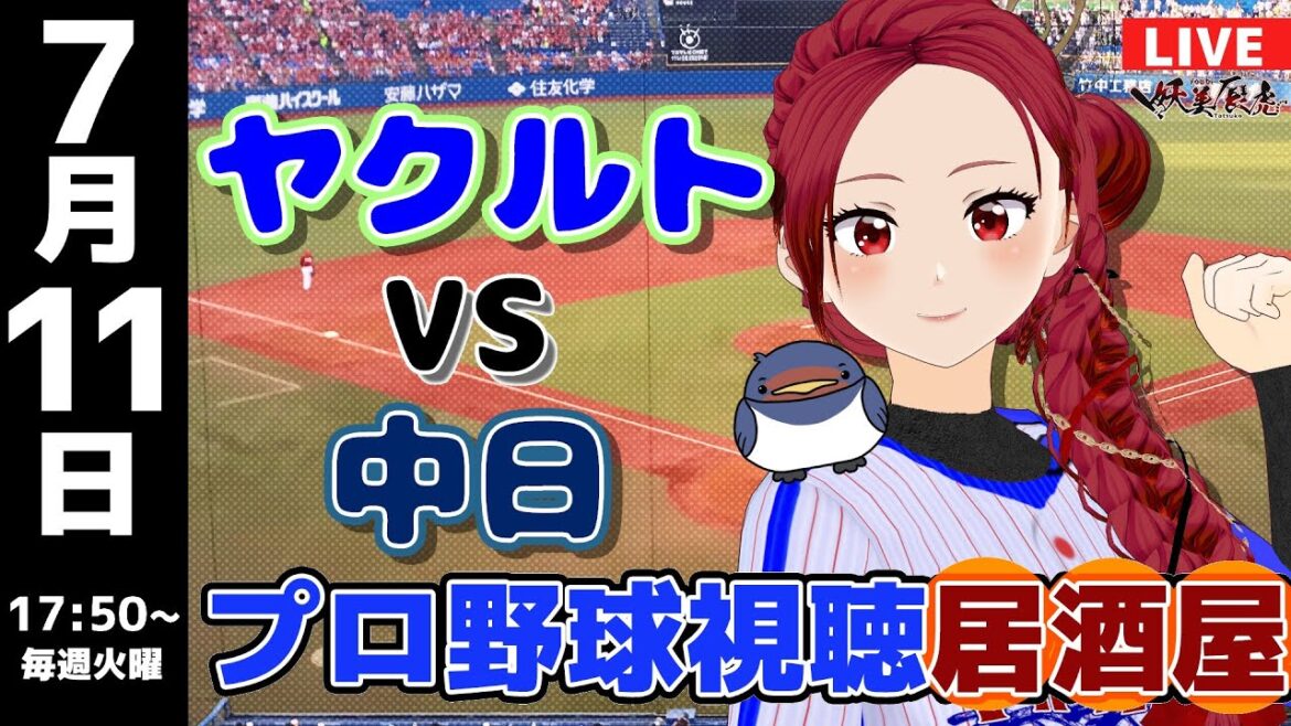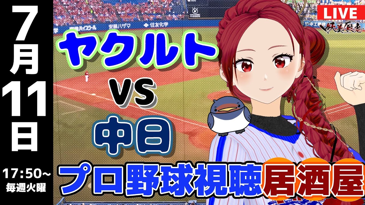 【 プロ野球 同時視聴 】2023/7/11 東京 ヤクルト スワローズ 対 中日 ドラゴンズ #妖美辰虎【 ライブ #Vtuber】