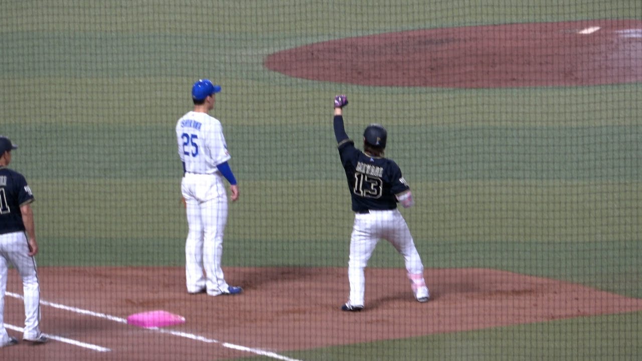 宮城大弥、プロ初打点!ベース上でガッツポーズ!