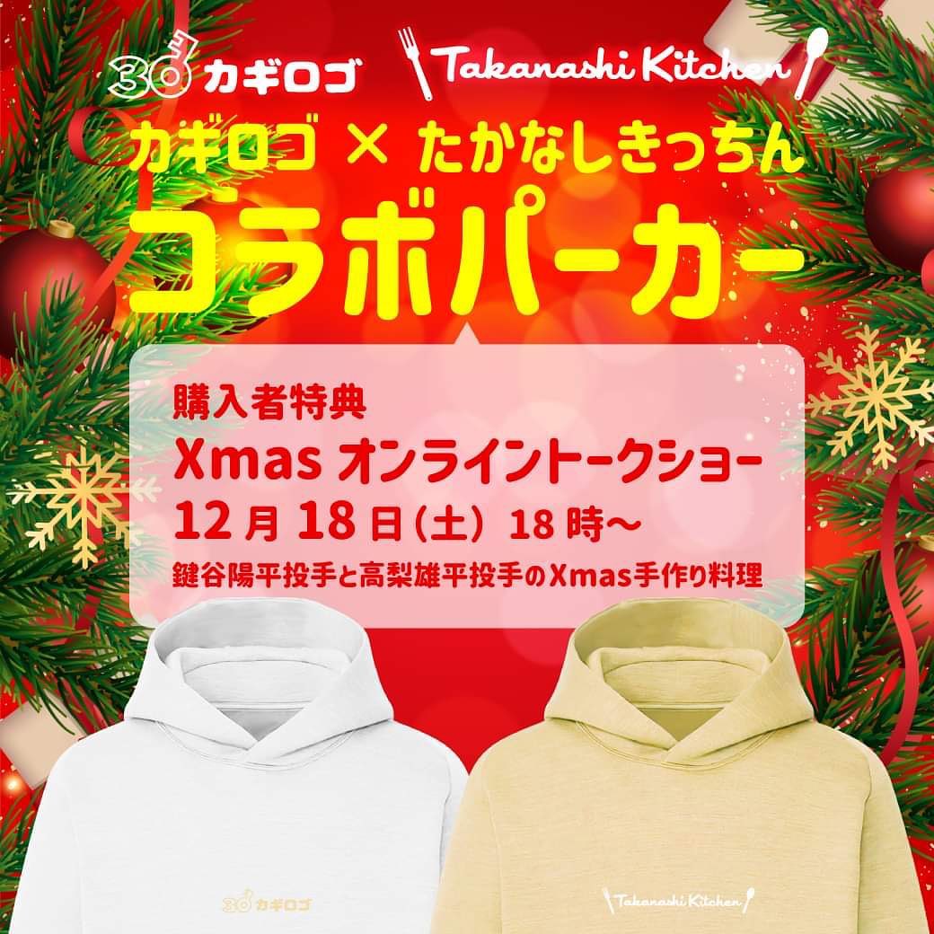 #鍵谷陽平 投手の「#カギロゴ」と #高梨雄平 投手の「#たかなしきっちん」がコラボしたパーカーを、GIANTS IDをお持ちの方を対象に「#ジャイアンツオンラインストア」で、本日から12月17日23時59分まで期間限定で販売します🎄