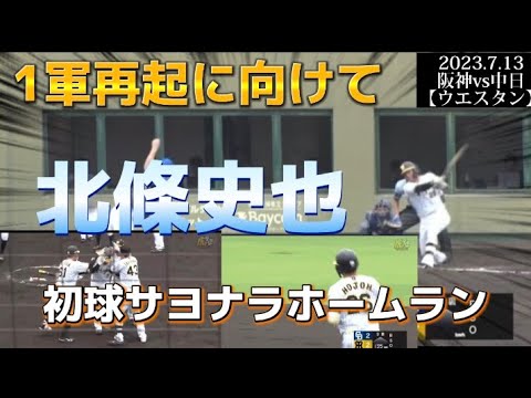 2023.7.13 阪神vs中日【ウエスタン】にて同点で迎えた9回裏 北條史也選手は初球を振り抜いて劇的サヨナラアーチ。1軍復帰へ猛アピールしました。