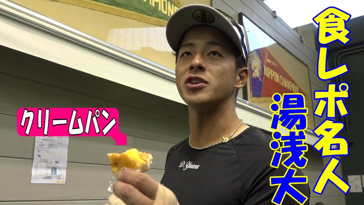 松原聖弥選手がカメラマンとなり北村拓己選手と湯浅大選手による寸劇を監修。湯浅選手の食レポをお見逃しなく。