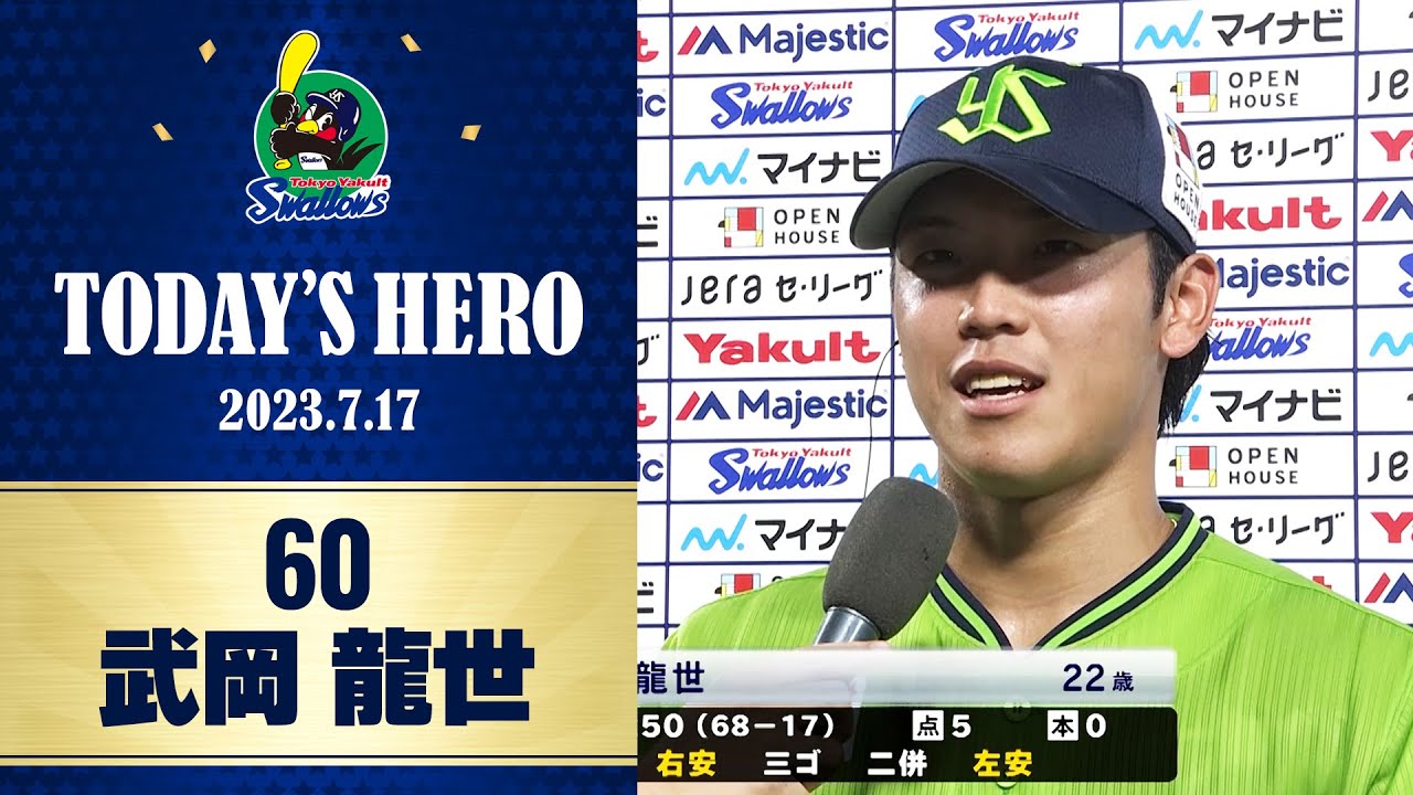 東京ヤクルトスワローズvs巨人戦後の武岡龍世選手のヒーローインタビューです。