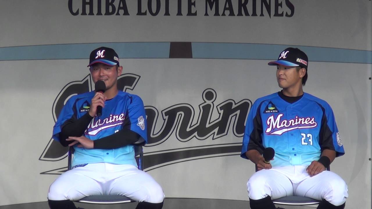 2016.5.29、千葉ロッテマリーンズマリンフェスタ試合後トークショーは江村直也と中村奨吾。同い年の2人ですが果たして仲がいいのか悪いのか?
