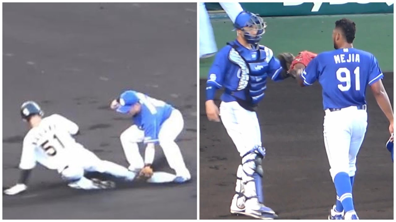宇佐見真吾 強肩発動!完璧なストライク送球で中野タッチアウト!昨日から2試合続けて甲子園で盗塁阻止!(2023年7月15日16日)